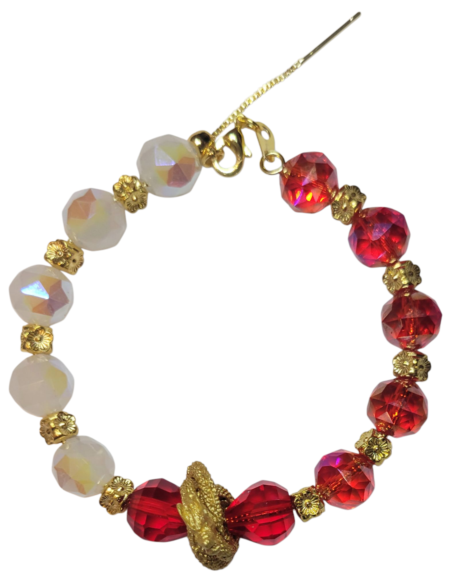 Adjustable Bracelet' Red & White Faceted wim/ Dragon